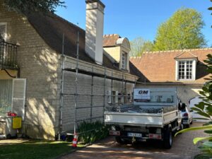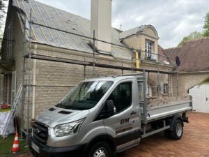 Par ailleurs, nous disposons de moyens techniques importants, ce qui nous permet de satisfaire tous vos besoins et envies : monte-tuiles, Équipements de Protection Individuelle (EPI), stock de tuiles, échelles, échafaudages, nacelle, etc.